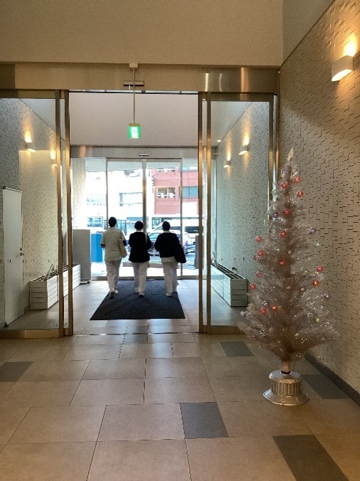 毎朝、学校で、教員よりICカード、血圧計など受け取り、実習病院へ向かいます。